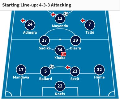 無論、中盤ではジャカが攻守に目配りをし、サディキとディアラは圧倒的運動量で走り回っていたのも頼もしい。