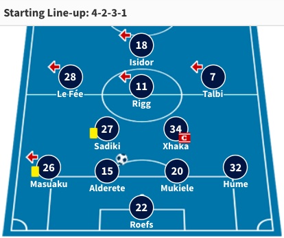 38’ 0-1 アルデレテ [アシスト] ジャカ